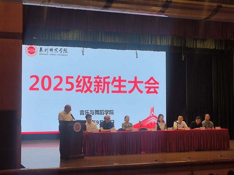 9月13日晚,音乐与舞蹈学院在音乐厅召开2025级新生大会,党委书记苏国柱、院长陈恩慧、党委副书记兼纪委书记常飞云,副院长吴少静、翁世晖,各系(专业)主任、副主任,各科室主任,辅导员及2025级本硕学生参加会议。