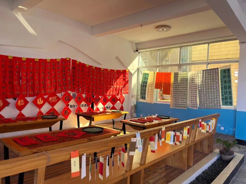 在活动开始前,书法协会成员便通过分享电子邀请函进行活动宣传。本次书法作品展为期两天活动期间协会负责人以及成员亲切地引导同学们进行观展一个个驻足书法作品前身影,成为寒风凛冽的冬日中最靓丽的风景线。