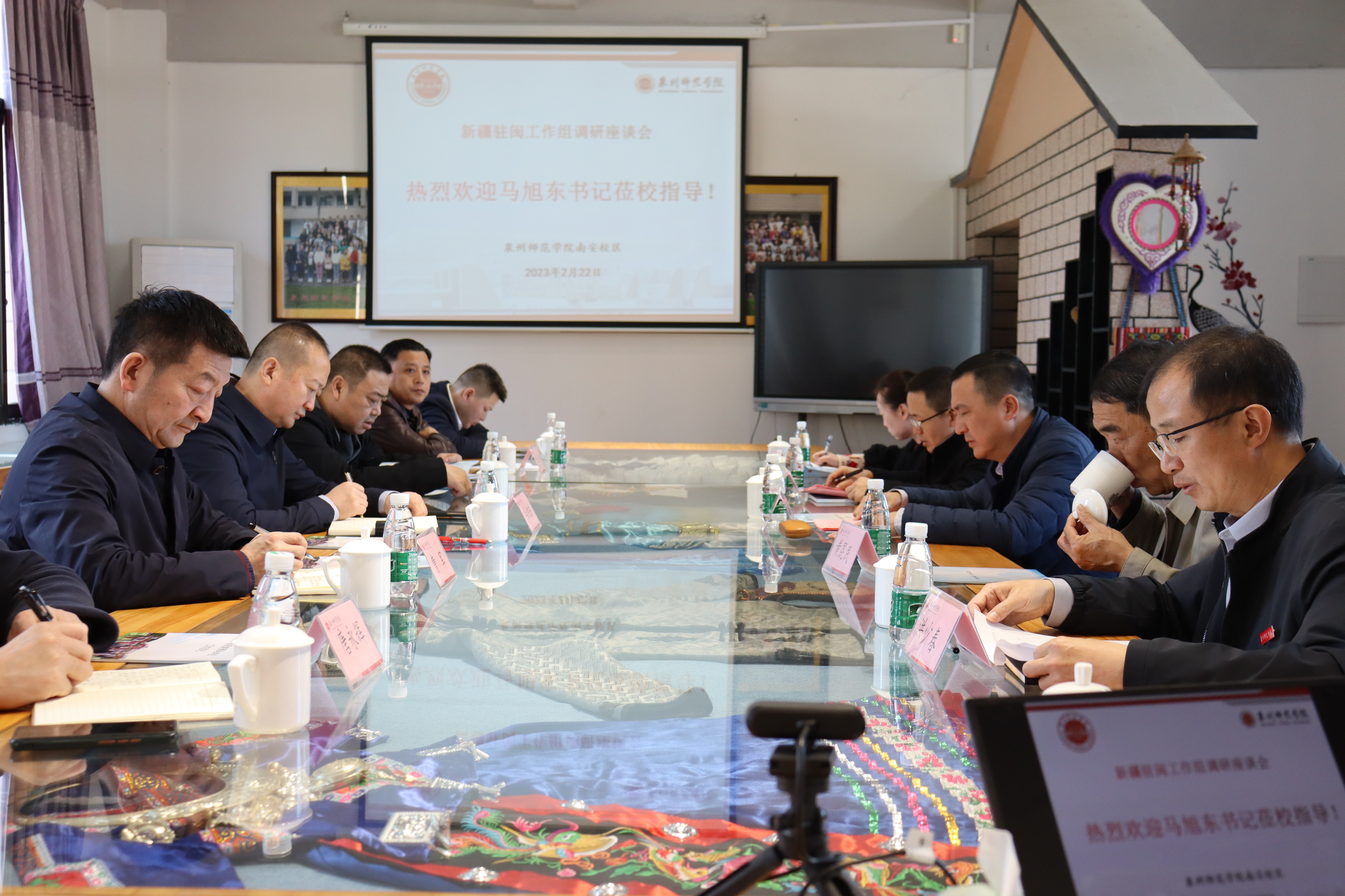 2月22日,福建省委政法委副书记、新疆驻福建工作组党委书记、组长马旭东一行莅临我校南安校区调研新疆学生工作,新疆驻福建工作组党委副书记、副组长、教育协调小组组长曹军等陪同。校党委副书记林伟,统战部、学工部、南安学院等有关单位负责人,部分新疆师生参加相关活动。