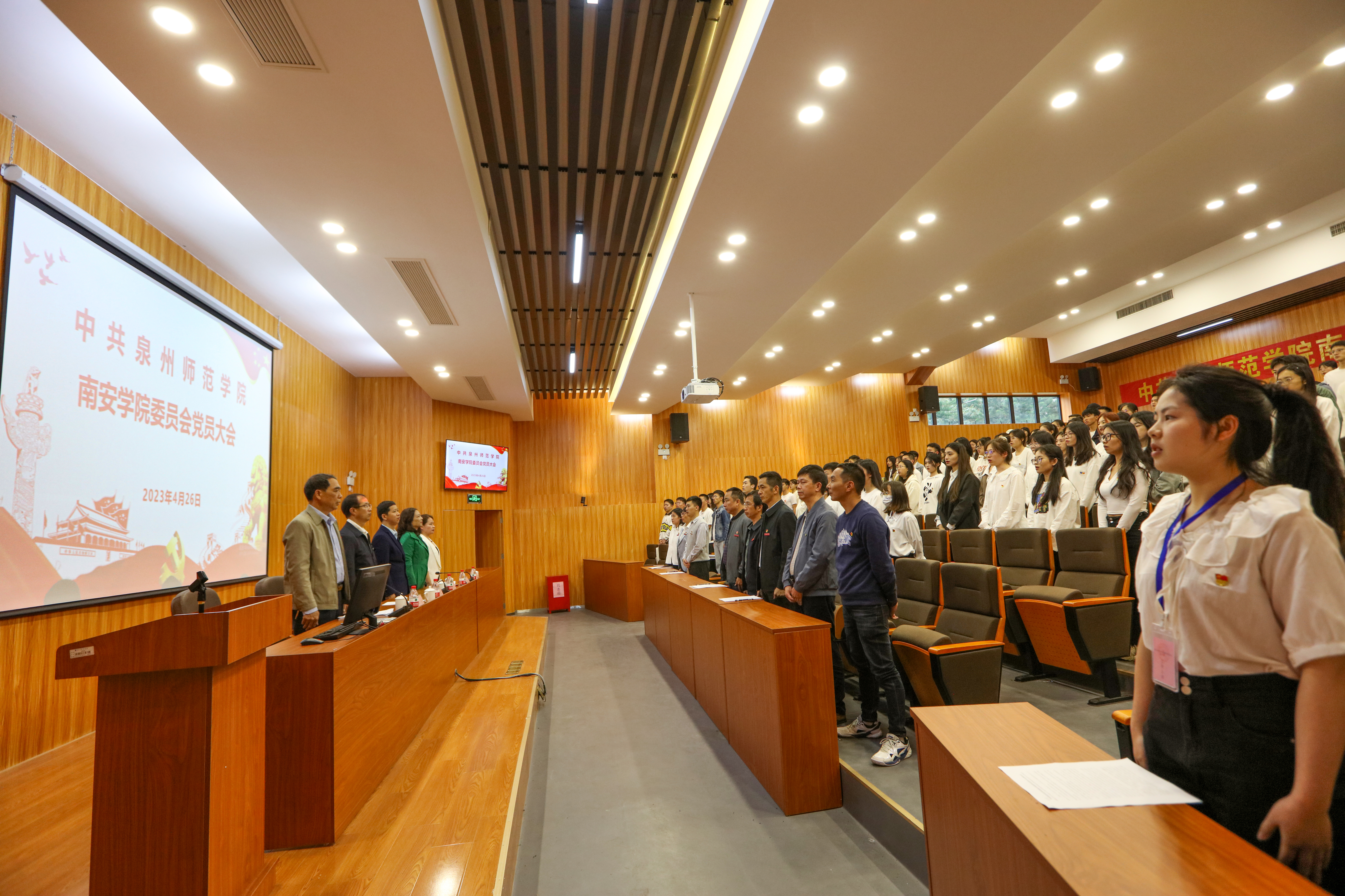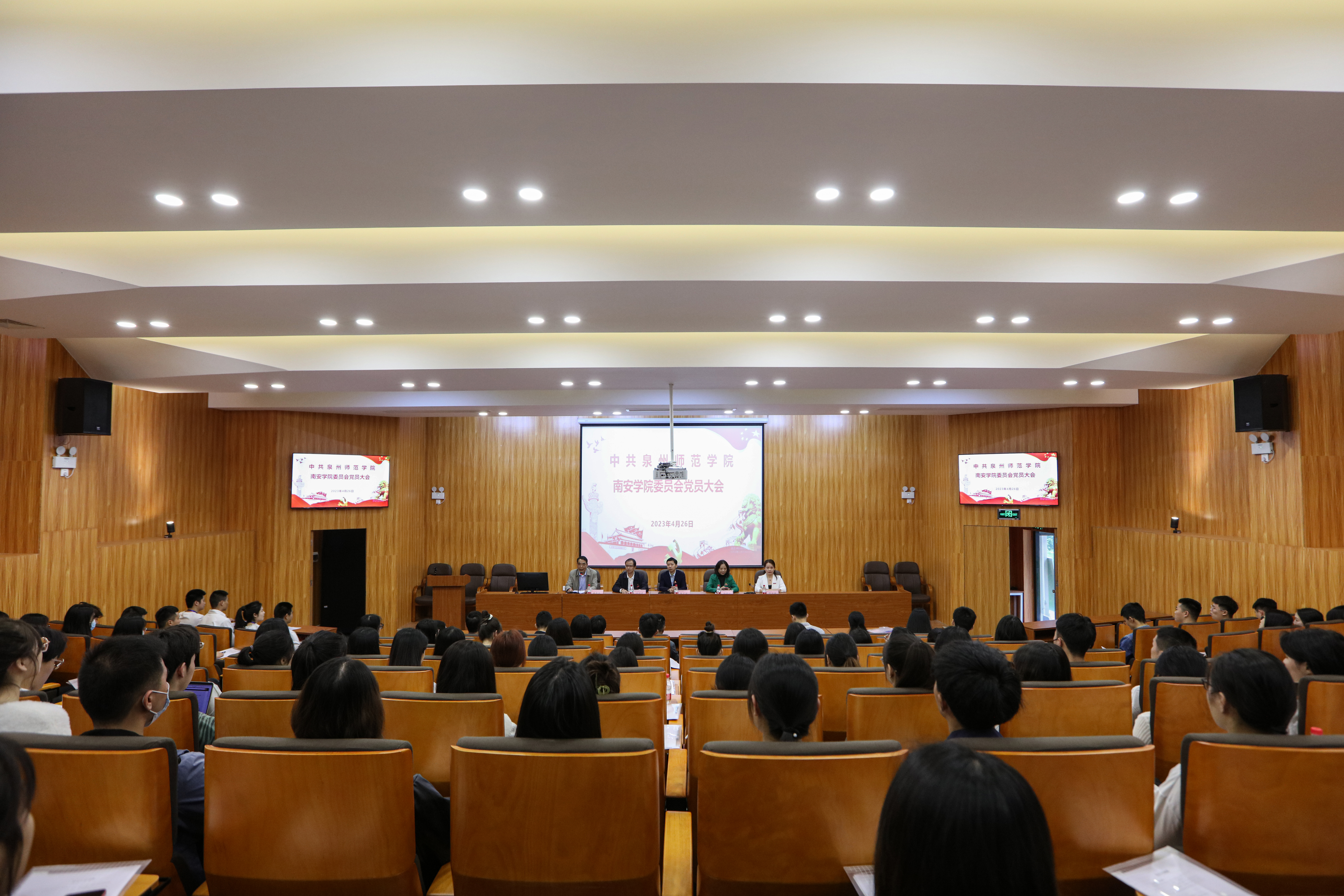 4月26日,南安学院党员大会在南安校区黄仲咸学术报告厅召开,校党委组织部干部科科长陈式座、外国语学院党委书记蒋双霖、航海与交通学院党委书记陈霞红等莅临指导。大会由南安学院党委副书记、常务副院长(主持)黄昆民主持会议,全体党员参加会议。