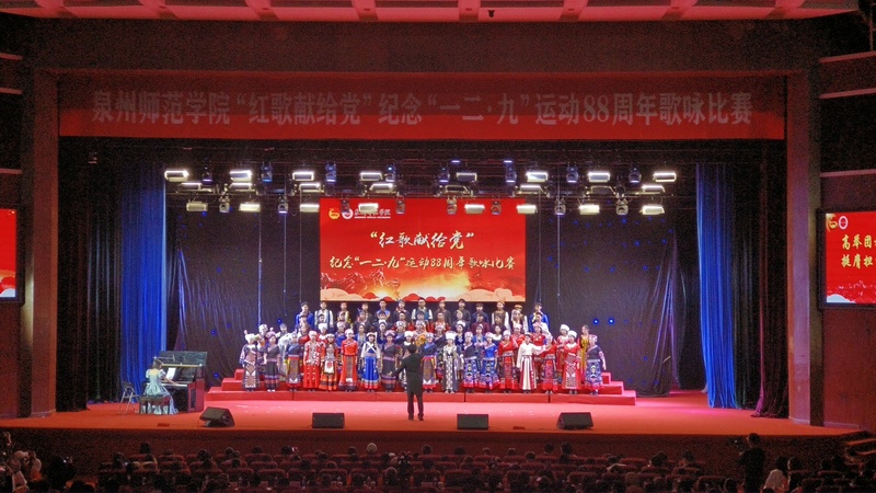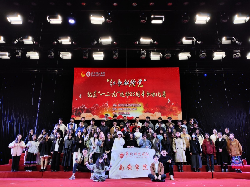 12月7日下午,由共青团英国威廉希尔公司官网委员会主办的“红歌献给党”纪念“一二·九”运动88周年歌咏比赛在陈祖昌大礼堂举行。南安学院65名同学组成合唱团代表学院参赛,我院合唱团参赛曲目为歌曲《复兴的力量》,合唱指导为吴敏、倪宇洋,指挥为方诺舟,钢伴为张睿雨。合唱比赛中,我院着民族服装,容光焕发,精神抖擞,展现了学生开拓进取、积极向上的精神风貌,最后,在15个二级学院的精彩演出中,我院荣获歌咏比赛一等奖。