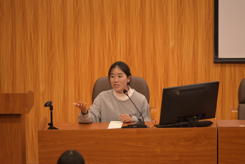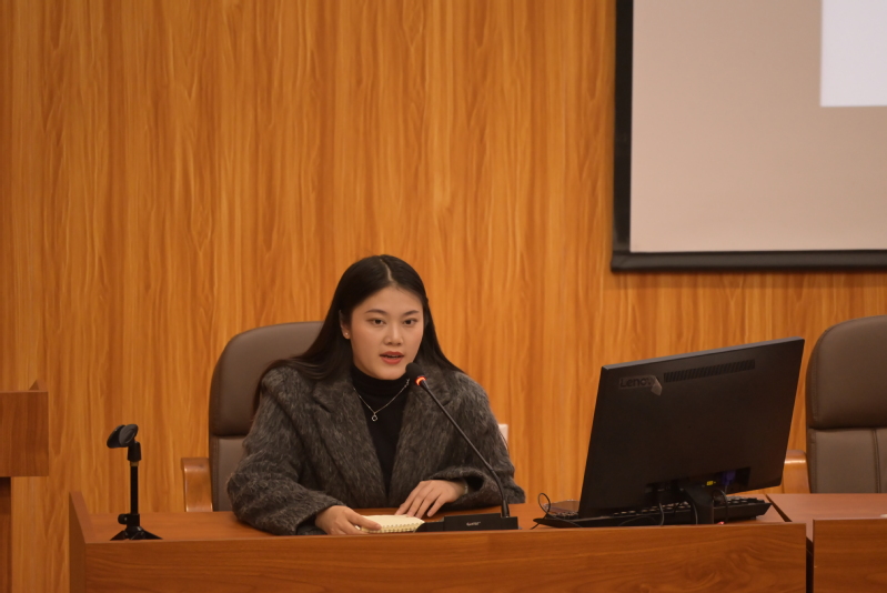 随后,黄陈婷同学分享了自己在面对挑战时的应对策略。她表示,无论是在校园内,还是在校园外都会遇到许多挑战,尤其是在教招笔试面试时在面试中遇到难题时,关键是要保持镇定,灵活应对。她通过自己的实际经历,向在场的学生们展示了如何克服困难并取得成功。