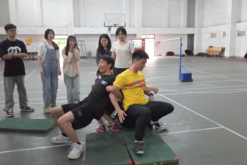 “群龙取水”游戏成了全场焦点,参与者们必须齐心协作,避免违规,以尽快完成任务。这一环节不仅考验了同学们的团队精神,也让大家暂时放下了学习的压力,充分享受团队游戏所带来的愉悦和成就感。
