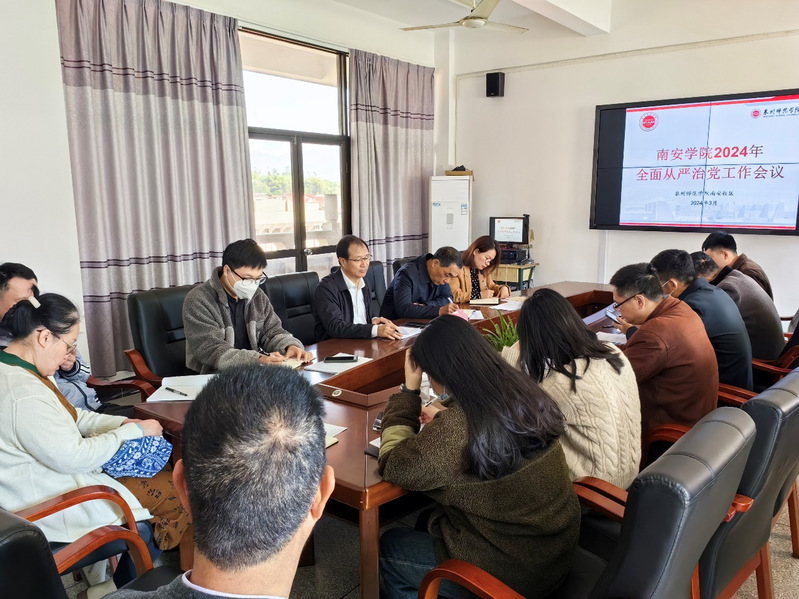 3月28日上午,南安学院在行政楼403会议室召开党委(扩大)会,学习传达贯彻2024年全省教育系统全面从严治党工作视频会议精神并布置廉政风险防控情况排查工作,全体教职员工参加会议,会议由学院党委书记洪少春主持。