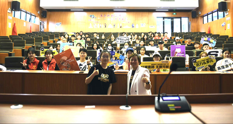 宣讲会在南安学院的黄仲咸报告厅拉开帷幕,现场气氛热烈。Melody总监以亲切而专业的姿态,向在场师生介绍了斯凯奇品牌的发展历程与辉煌成就,还分享了联泰零售的发展历程,详细介绍了联泰如何在零售领域深耕细作,与斯凯奇携手共进,共同开创零售新篇章。此环节引发了现场学生的浓厚兴趣,大家纷纷举手提问,Melody总监耐心解答,现场互动频繁,气氛活跃。