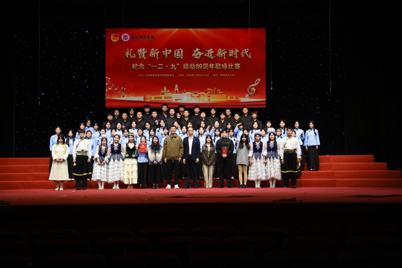 12月5日,学校举行“礼赞新中国 奋进新时代”纪念“一二·九”运动89周年歌咏比赛,南安学院合唱队倾情演绎歌曲《不忘初心》,深深打动了评委老师,在全校16支参赛队伍中脱颖而出,以9.85的高分荣获特等奖(第二名)。