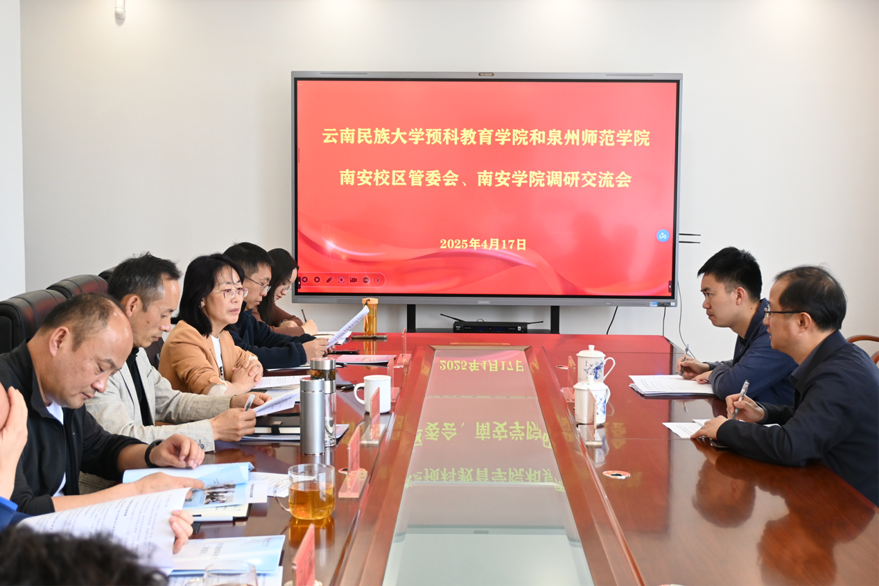 在调研中,交流团队围绕民族预科教育基地建设、课程改革创新、学生思政教育、两校合作等主题,与云南民族大学预科教育学院领导及教师代表进行了深入座谈。座谈会上,洪少春对云南民大预科教育学院及基地的办学成果和特色经验给予高度评价,并介绍了南安学院在民族预科教育领域的探索与实践。双方就如何优化办学模式、强化师资队伍建设、深化中华民族共同体意识教育等议题展开热烈讨论。