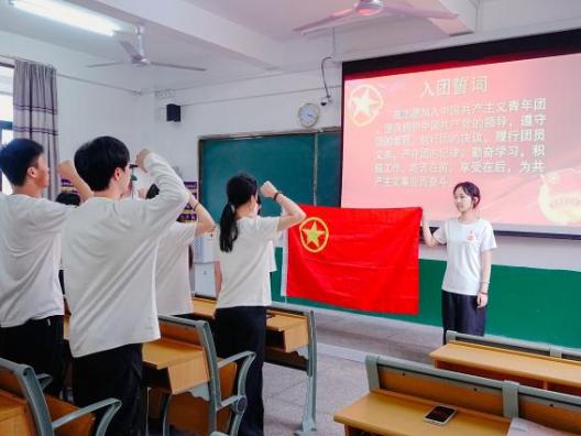 “这份团徽承载着十年成长印记。”拥有十年团龄的陈毅同学通过个人成长故事,展现新时代共青团员的使命担当。24英语2班余海杰作为新团员代表发言。他表示,加入共青团不仅是荣誉,更是责任的开始,将把入团作为人生新起点,以团章为行动指南,在团组织培养下,脚踏实地提升本领,用行动践行入团誓言,在志愿服务和社会实践中展现青春担当。
