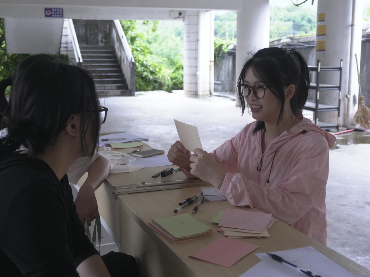 高盖楼的「圈住快乐」项目则让参与者将彩色套圈投向贴满正能量标语的水瓶,每一次精准投掷都象征着对焦虑的释放。特别值得一提的是,参与过“解忧调色盘”的同学还能享受“加圈福利”,让快乐体验倍增。