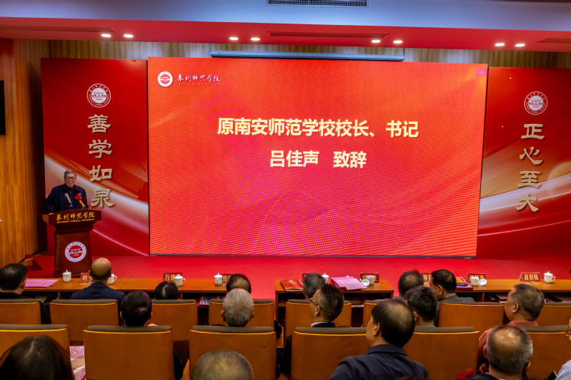 原南安师范学校校长、书记,校友会高级顾问吕佳声向南安学院校友会赠送牌匾并致辞。