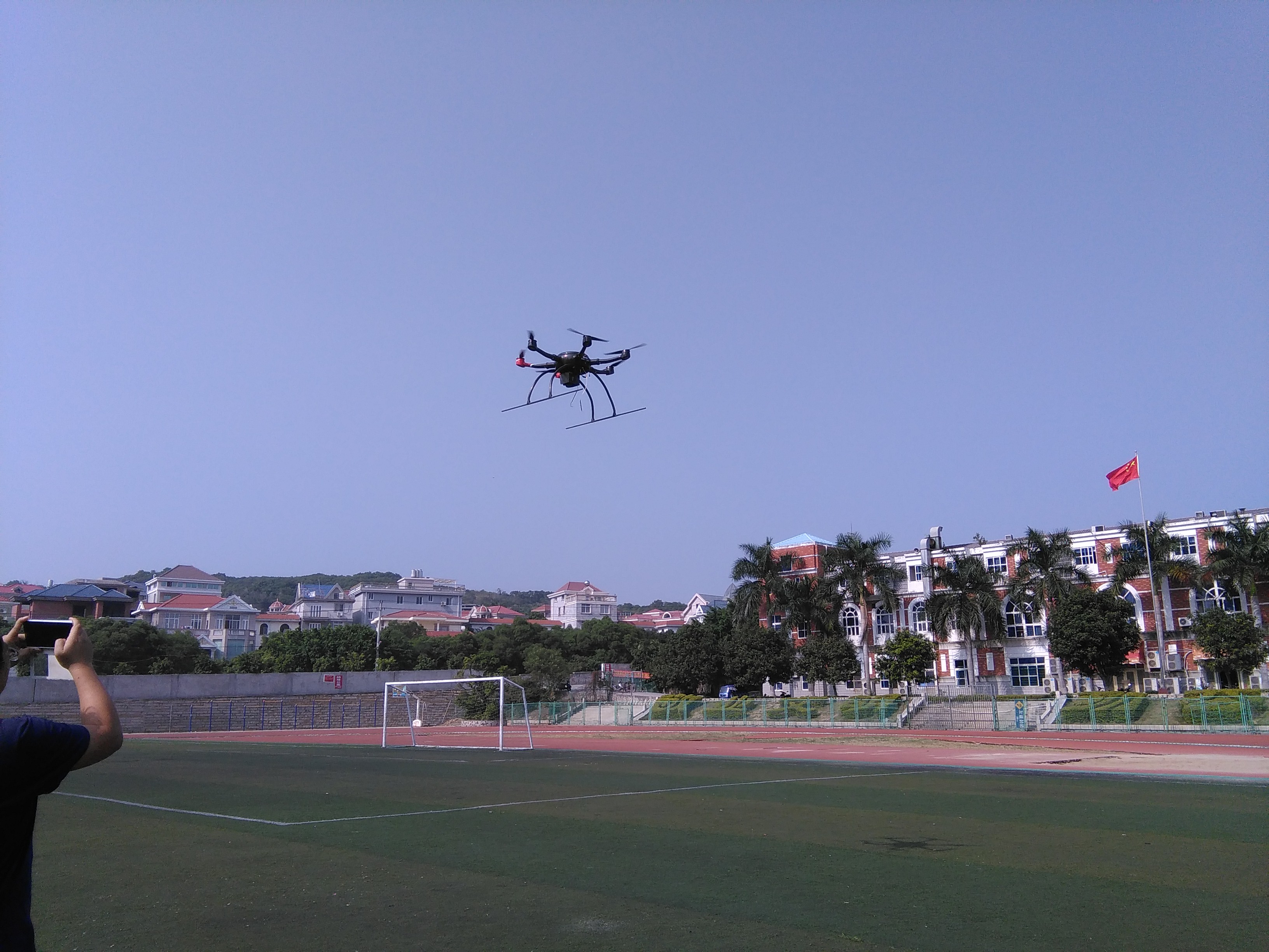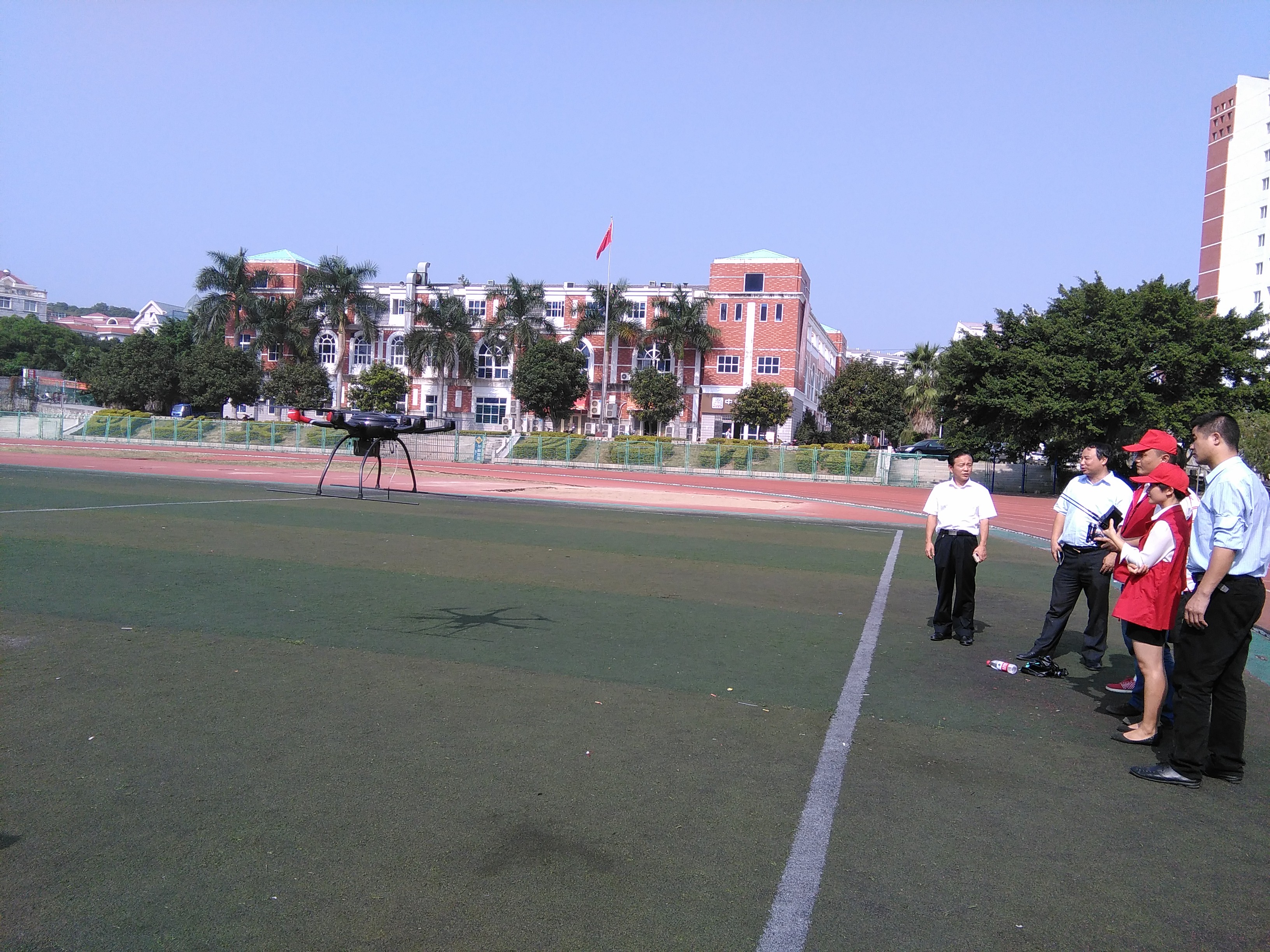 2015年10月27日,我校资源与环境科学学院邀请龙岩市方圆经济技术开发有限公司来我校进行交流、演示无人飞机系统。这是资源与环境学院继之前邀请厦门大学、厦门理工学院来我校交流无人机遥感研发及其应用后再次邀请无人机研发公司来校交流。龙岩市方圆经济技术开发有限公司是国家一级安防企业、国家科技型创新企业,是一家从事软件开发、无人飞机系统的研发、生产为一体的智能系统集成的高科技企业。当天中午,校科研处袁建军处长、资环学院李子蓉副院长、黄联国书记、GIS专任教师等10多人,参加观看六旋翼无人飞机的飞行及拍摄,并咨询相关技术问题。随后,方圆经济技术开发有限公司李总等人与资源与环境学院相关教师进行了深入的交流。