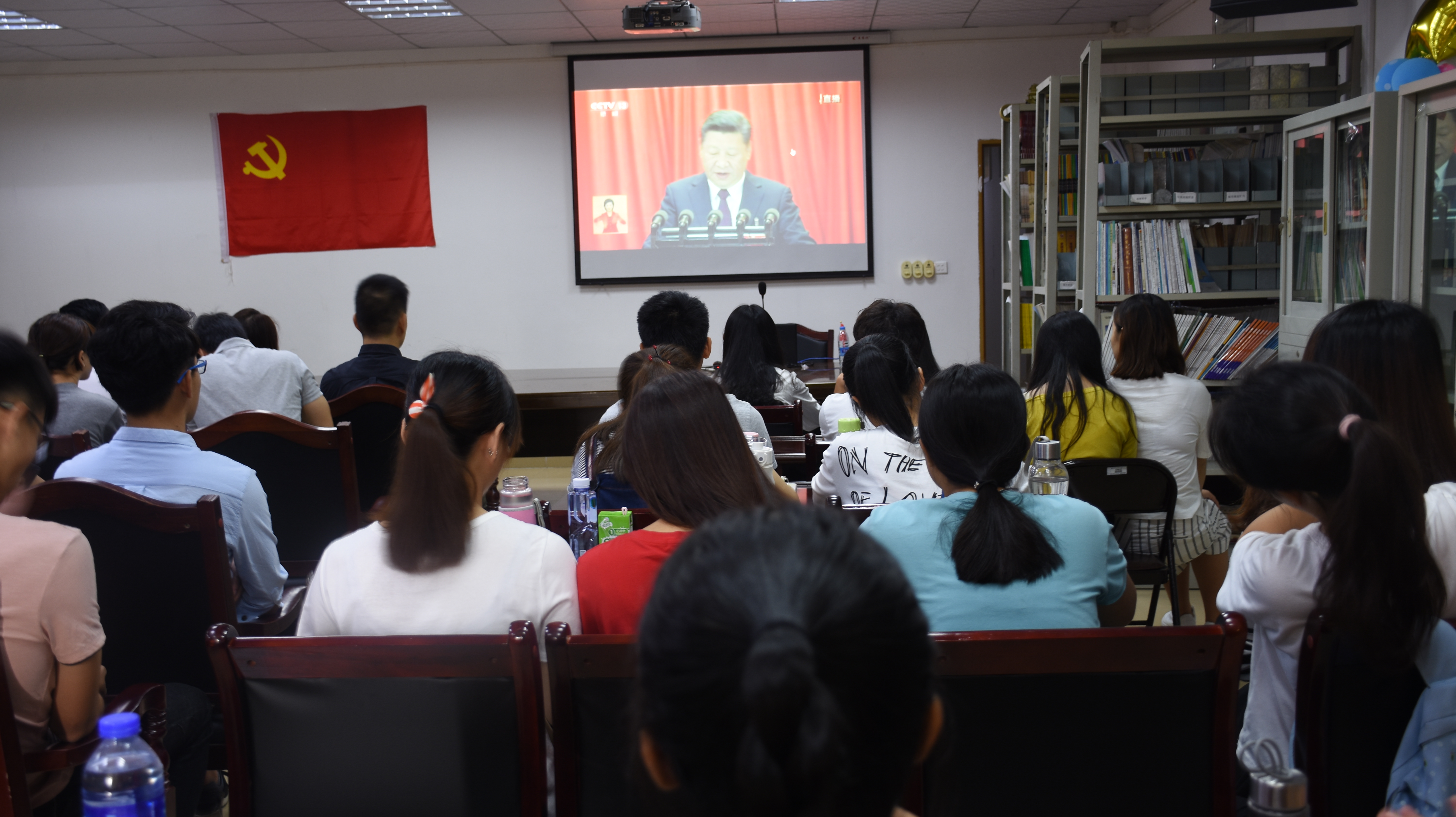 20171018日上午9点整,中国共产党第十九次全国代表大会在人民大会堂隆重开幕。为使老师和同学们更加了解党的发展,更加贴近党的十九大,资源与环境科学学院组织全员师生代表在邱天生429会议室观看十九大开幕会直播。