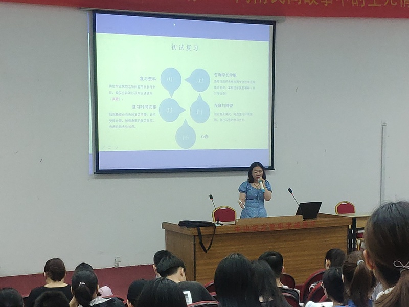 最后,黄初龙、李蕊蕊等老师分别结合自身的经历给同学们提出了一些意见,鼓励同学们充分利用身边的资源:包括老师以及成功考研的学长学姐资源,搜集考研资料、了解考研信息,帮助自己成功考研,并向同学们表达了衷心的祝愿。