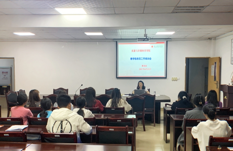 20214月23日,为了促进师生之间的沟通交流,营造更好的教学氛围,为了提高学院教学管理质量,资环学院教研办组织了教学信息员工作培训会。会议由院教研办主任主持,学院全体教学信息员(各班学习委员)及院学生会学习部全体成员参加。