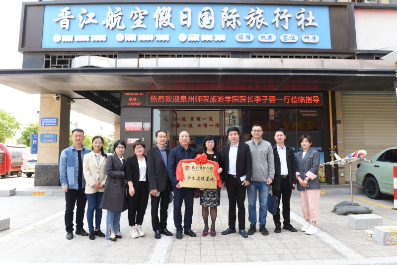 410日,资环学院(旅游学院)开展访企拓岗促就业活动。院长李子蓉与晋江航空假日旅行社有限公司董事长陈志联共同为“大学生实践基地”揭牌并签署合作协议。晋江文旅局副局长蔡经雄、晋江市企业与企业家联合会党委书记黄志荣共同见证了基地的揭牌。资环学院党委书记连明伟副院长钱莲文等参加了揭牌仪式和签约仪式