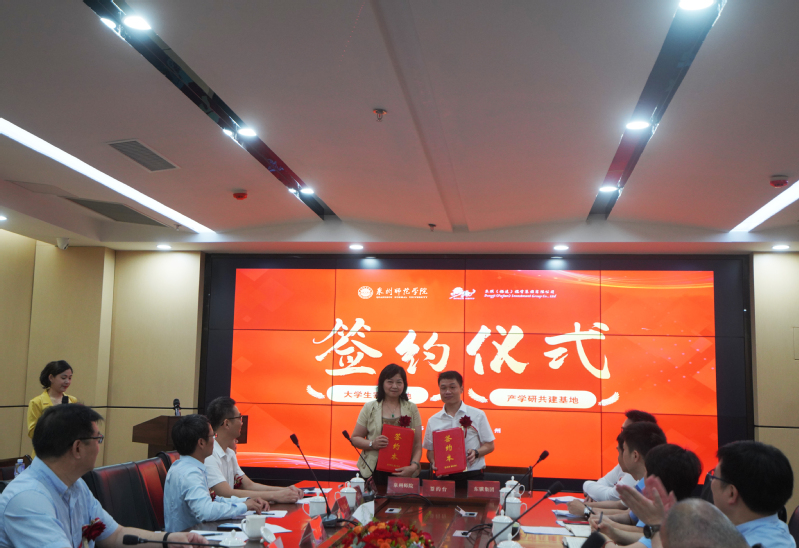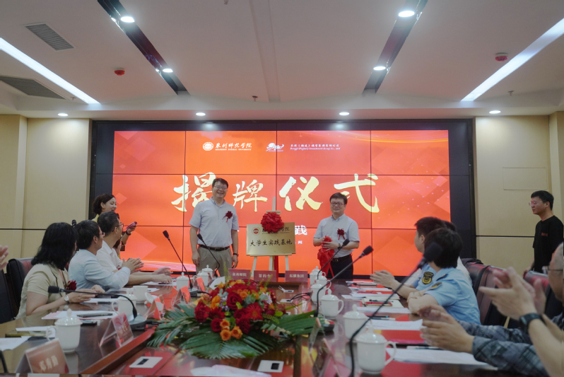 5月16日,资环学院与东骥(福建)投资集团有限公司(以下简称东骥集团丰泽区海西育成基地共同举行“产学共建基地”“大学生实践基地”签约仪式。副校长夏侯建兵,丰泽区市场监督管理局局长康招传、副局长蔡安莉,丰泽区工业信息化和科技局副局长章嵘坚,东骥集团董事长黄海滨、总经理林耀中,资环学院院长李子蓉、书记江文元教师代表,科技处、实习实训处相关人员,政府代表,企业代表参加活动。副校长夏侯建兵与丰泽区市场监督管理局局长康招传共同为“产学共建基地”“大学生实践基地”揭牌院长李子蓉与东骥集团董事长黄海滨代表双方签署协议。
