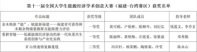 我院学子在第十一届全国大学生能源经济学术创意大赛(福建-台湾赛区)中获得佳绩