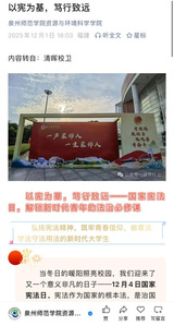 2025年12月4日是第十二个国家宪法日,且迎来第八个“宪法宣传周”活动。为深入学习贯彻落实习近平法治思想,推动宪法深入人心,资环学院以此为契机,自12月1日起组织开展了形式多样、内容扎实的宪法宣传系列活动,引导师生在沉浸式法治文化体验中感悟宪法力量。