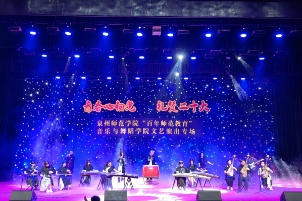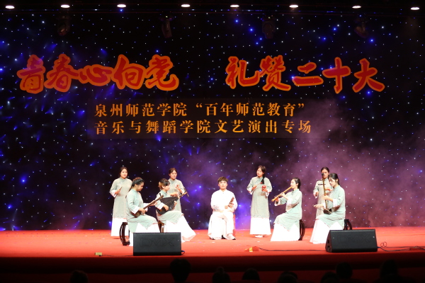 此次文艺演出专场是学校深入开展学习贯彻习近平新时代中国特色社会主义思想主题教育,学习贯彻党的二十大精神的生动实践,展现了我校百年师范教育的育人成果和我校学子奋发进取的精神风貌,丰富了我校思想政治工作和校园文化,有助于引导广大青年学生厚植爱国主义情怀,增强民族自豪感和自信心,是一堂生动难忘的思政课。(音乐与舞蹈学院)