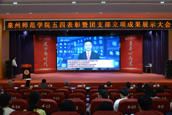 5月8日下午,我校举行“五四”表彰暨“立志报国,挺膺担当”团支部立项成果展示会。校党委副书记陈晓风出席活动,共青团泉州市委副书记何培旭、福建师范大学团委书记周延锋等受邀担任团支部立项展示大会评委并做现场点评,学校有关职能部门负责人,各二级学院(系)学生工作负责人、团委负责人和师生代表300余人参加活动。