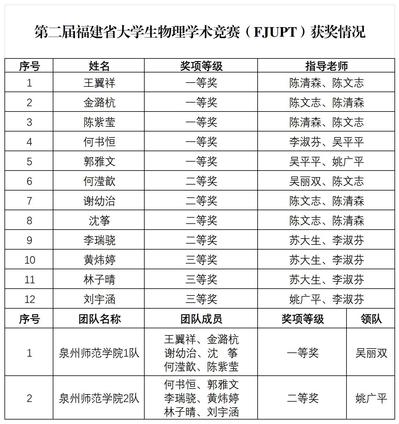 【喜讯】我校学子在第二届福建省大学生物理学术竞赛中获佳绩